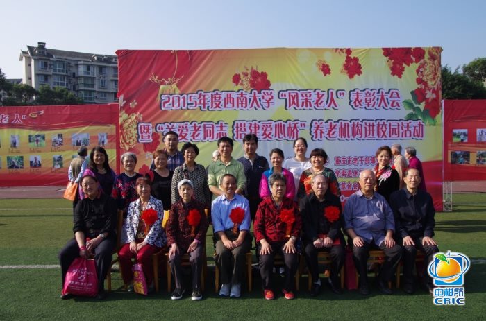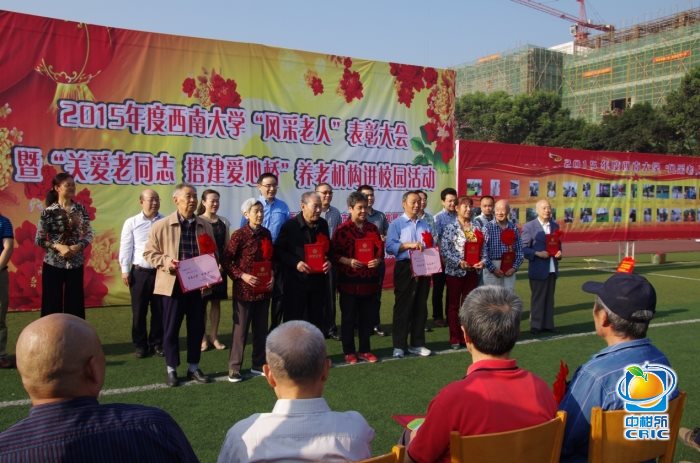 重阳佳节,艳阳高照,第二届西南大学“风采老人”表彰暨“关爱老同志搭建爱心桥”养老机构进校园活动在学校第三运动场举行,我所丁一、李广勤、王世碧、张进仁、左廷英5位老同志评为“风采老人”,获学校表彰。