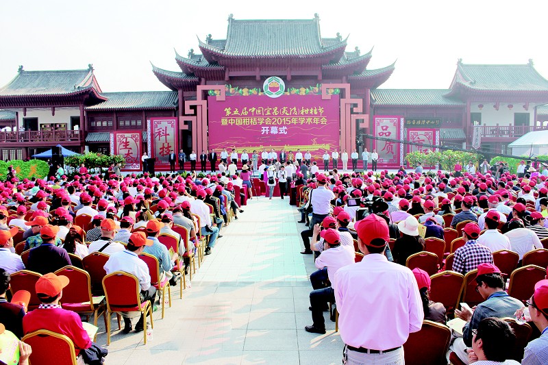 16日上午,中国柑桔学会2015年学术年会在夷陵区小溪塔街道官庄村开幕。夷陵区委书记刘洪福致欢迎辞,周常勇理事长代表中国柑桔学会致辞,邓秀新院士宣布学术年会开幕。开幕式后,三峡柑桔博物馆举行了开馆仪式,与会领导及嘉宾参观博物馆、夷陵农产品展销中心、官庄柑桔交易市场和习家岗生态柑桔园。
