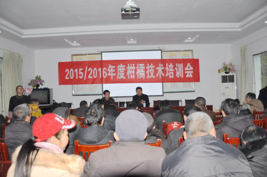 应云阳县果品产业发展局的邀请,1月22日淳长品副研究员在云阳县盘龙镇活龙村办公室从柑橘冬季修剪、清园、冬春季施肥、晚熟柑橘冬季保果和抗冻等方面开展了技术培训会,参会人员有云阳县果业局技术人员、26个柑橘基地乡镇农业服务中心的技术骨干和当地果农共90余人。