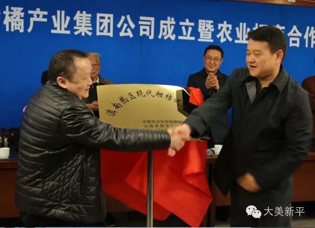 当天,新平县人民政府还与中国农业科学院柑桔研究所签订科技合作协议,与云南农业大学签订产学研基地合作协议,与晨农集团、厚田农业、二宝公司、鼎成农业科技公司签订招商合作协议,举行了云南滇橙柑橘产业集团、中国农业科学院柑桔研究所滇南热区现代柑桔试验站、云南农业大学新平县产学研结合基地揭牌仪式。