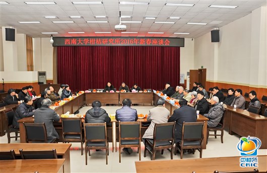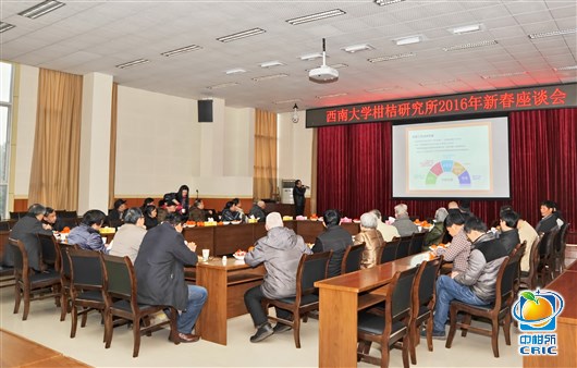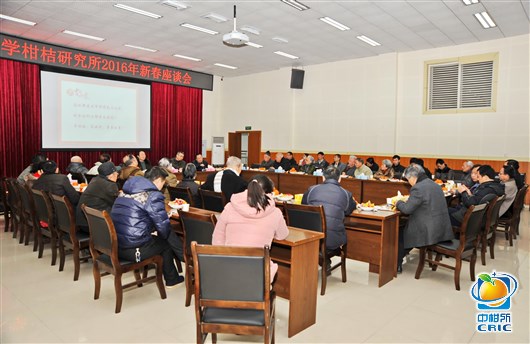 1月27日上午,柑桔所召开2016年新春座谈会。副校长周常勇及所领导、职能部门负责人、民主党派主委、新进博士代表、工勤人员代表以及退休所领导、离休干部代表、退休正高职称科技人员代表、离退休党支部支委、民主党派代表等40余人参加会议。所党委书记骆云中主持座谈会。陈善春所长通报了所2015年工作情况和2016年工作要点。