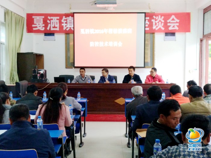 11月10至11日,应云南省新平县农业局邀请,柑桔研究所副所长王雪峰研究员、植保室副主任冉春研究员一行先后到新平县者乡、水塘镇、戛洒镇、漠沙镇开展为期2天的柑桔病虫害防控技术培训。来自县农业局植保站工作人员、各乡镇农技人员、种植公司负责人及果农共计600余名相关人员参加了培训。