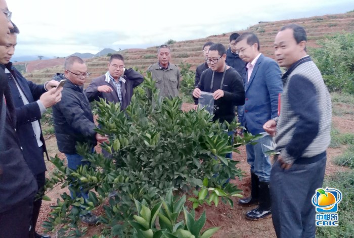 培训期间,王雪峰、冉春还深入到云南鼎成农业科技有限公司基地调研新定植柑桔苗木溃疡病的发生情况,并提出有效的防控技术措施:一是重视种苗安全,种植无病种苗;二是对零星发生区的病株及时挖除销毁,并用生石灰对病株种植塘进行消毒后再补种;三是对基地附近溃疡病发生的地方,尽快采取隔离措施,种植防护林。