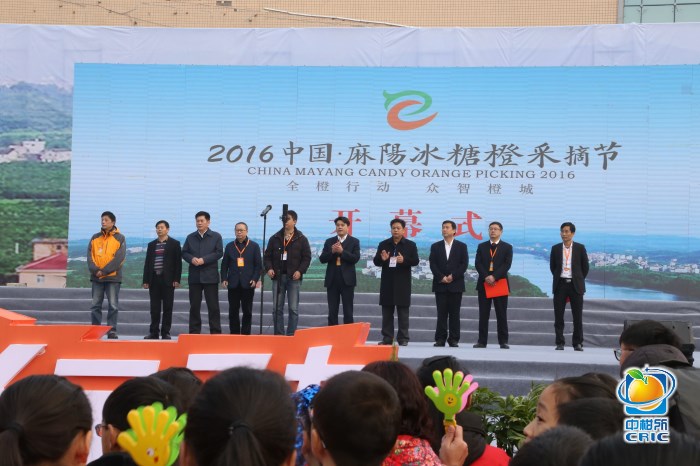 12月9日,2016中国・麻阳冰糖橙采摘节在麻阳县锦江广场开幕。湖南省科协副主席、省农科院党委书记柏连阳,湖南省柑桔产业技术体系首席专家、省农科院党委副书记单杨,湖南省农科院园艺所、湖南农大的柑橘专家以及200余家来自全国各地的柑桔经销商和麻阳当地百姓共计1000余人参加了开幕式。受陈善春所长的委托,党委副书记易鹏、品种资源及育种室副主任江东一行参加了开幕式。