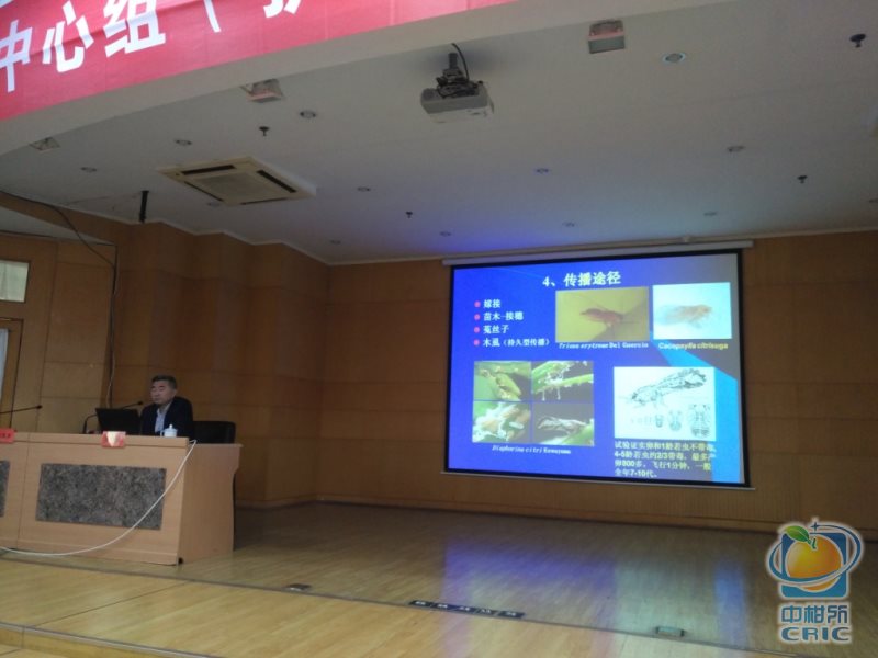 周常勇副校长在普及柑桔黄龙病背景知识的基础上,介绍了世界及我国柑桔产区黄龙病流行态势,防控难点及严峻形势,总结了采用“三板斧”等措施防治黄龙病的成功经验以及采用肥料矫治、锯枝惜砍及丢荒失管等失败案例的惨痛教训。结合南丰县的实际情况,周常勇副校长提出,组建强有力的防治工作领导小组,加强宣传、引导;加强种苗检疫,完善种苗繁育体系;加强木虱普查监控及撂荒果园清理;严防锯枝惜砍,肥料矫治,严格落实三板斧经验;整合资源,落实联防联控等建议。希望构建以负面案例宣传为基础,以政府为引导、专业合作社和企业为防控主体,“村规民约”、“大户带动”等民间防控为补充的防控局面,从而保障南丰柑桔产业的可持续发展。