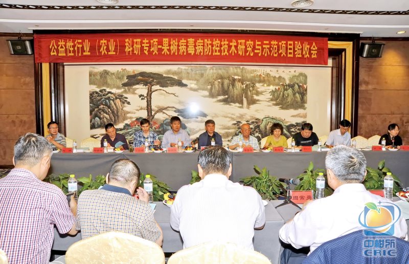 验收组专家在听取工作汇报、审阅相关资料后,并经过质疑和充分讨论,一致认为项目超额完成任务书中规定的各项考核指标和研究任务,总体技术达到国际先进水平、部分技术达到国际领先水平,项目经费管理和使用基本符合《公益性行业科研专项经费管理试行办法》等规定,一致同意通过项目业务验收和财务验收。验收意见认为项目组构建了完整了果树病毒病检测技术体系,建立了实用的田间速测技术和高通量快速诊断平台,发现23种新病毒,其中9种国际新病毒和14种中国新记录;完善和大面积示范应用了柑桔苗木繁育技术体系,首次建立苹果、梨、葡萄等主要果树繁育技术体系,大大加快了我国果树无毒化进程。希望研究团队进一步加大成果示范推广,助推我国果树产业由大到强。