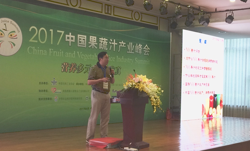 8月15-18日,由中国饮料工业协会主办,中国饮料工业协会果蔬汁分会、《饮料工业》杂志社承办,中国农业科学院柑桔研究所作为技术支持单位之一的“2017中国果蔬汁产业峰会”在广东省珠海市成功召开。来自农夫山泉、汇源、味全等上百家国内外果蔬汁生产企业、大专院校、设备厂家、商贸公司以及相关媒体的近300名代表参加了此次会议。大会以“营养多元、提质求实”为主题,邀请十多位行业专家围绕果蔬汁行业的现状和发展趋势、产品和技术创新、标准法规、生产设备升级等方面发表报告,有助于我国果蔬汁行业的结构转变和创新发展。