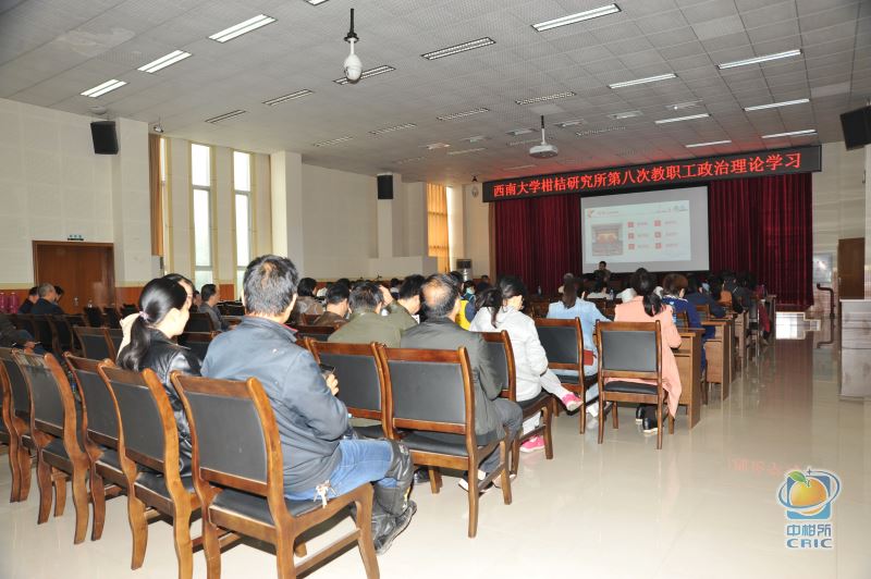 10月27日下午,根据学校党委统一部署,柑桔所在研究生公寓多功能厅召开全所职工大会,开展第八次教职工政治理论学习,学习党的十九大精神。党委骆云中书记主持会议,在所职工100余人参加会议。