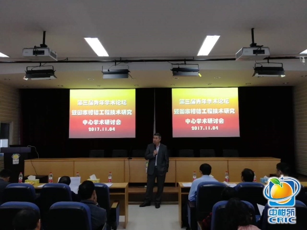 副校长周常勇研究员出席研讨会并致辞。他对7位专家的到来表示热烈欢迎,对他们来校指导科研工作表示感谢。同时,他勉励在座师生务必脚踏实地、戒骄戒躁,着力推进学校柑桔科技研究工作稳步迈向新时代。