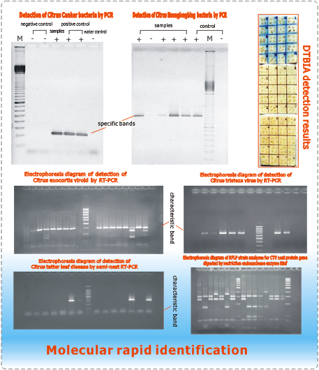 Using the rapid molecular identification techniques established, we have achieved the rapid identification of citrus viral diseases in the candidate mother trees in the transition period of Project for a Million Tons of Citrus Production in Chongqing, which promoted the development of the project. Meanwhile, within the support of “The Span Plan” of the Ministry of Agriculture, the Three Levels Propagation System was constructed by integrating techniques in molecular detection and container plant propagation, along with other techniques. This has resulted in more than ten thousand plants and more than one million budwoods of virus-free citrus for Chongqing and other citrus producing areas.