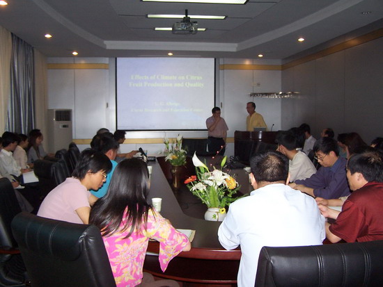 The former President of the International Association of Citrus (now honorary chairman) Gene Algrigo visiting the CRI.
